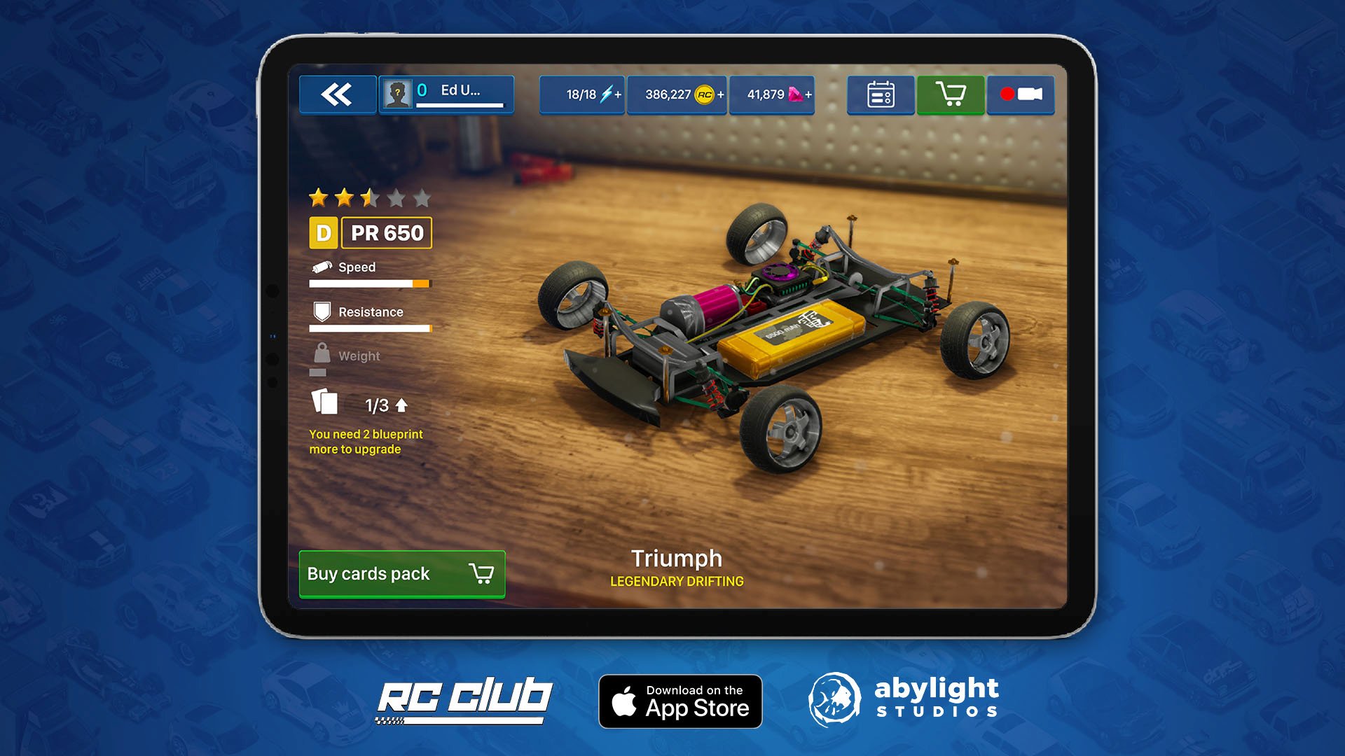 Collect blueprint cards, upgrade your cars and improve their performance.
