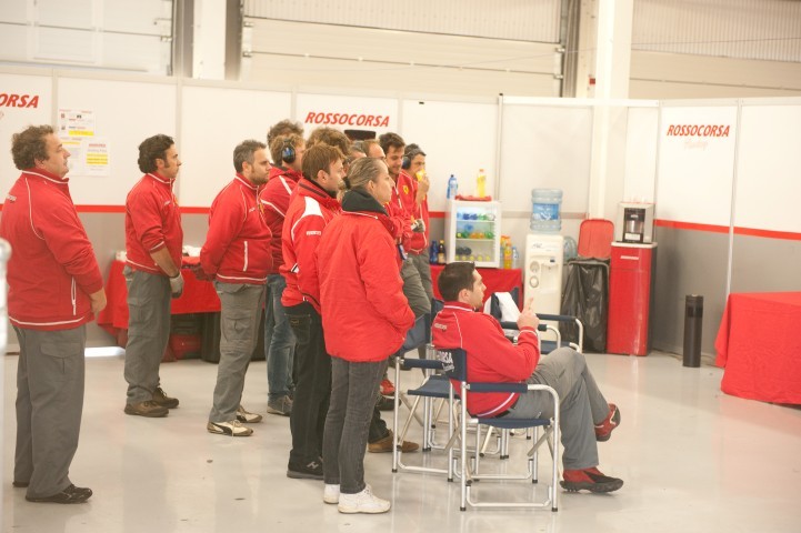 After spotting Ferrari F1 test driver and one-time Le-Mans 24 winner, Marc Gene, in the VIP area, we ventured into the garages during the first Challenge race, spotting some mechanics watching the Sky Italia TV feed of the race, cheering on their man. Then it was time to venture towards the podium end of the pitlane to find the hidden delights waiting there.